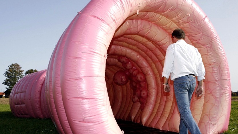 Das Darmmodell, ein begehbares Modell des menschlichen Darms, ermöglicht es Besuchern, die Entstehung von Darmkrebs anschaulich nachzuvollziehen und zu verstehen, was im Darm vorgeht, wie ein Polyp entsteht und warum eine Früherkennung möglich ist. Das Modell klärt Missverständnisse auf und schafft einen persönlichen Bezug zum eigenen Darm.