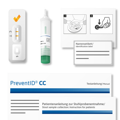 Le test immunologique de sang occulte PreventID® CC est un test rapide à usage personnel pour la détection qualitative du précieux pigment rouge du sang, l'hémoglobine, dans les selles comme marqueur de saignements intestinaux. Le résultat est lisible après 10 minutes.